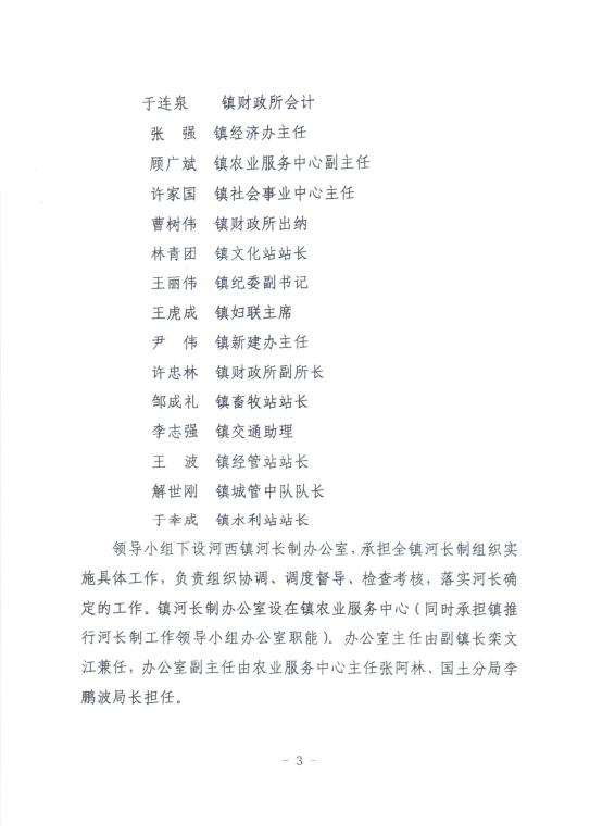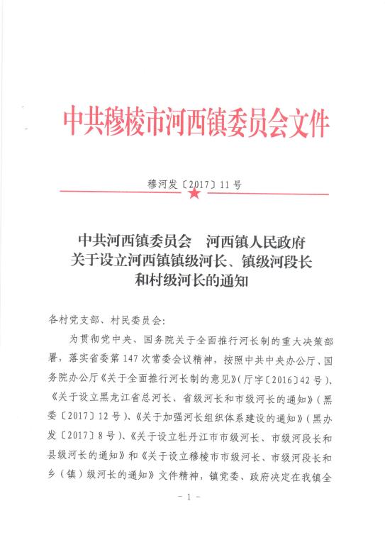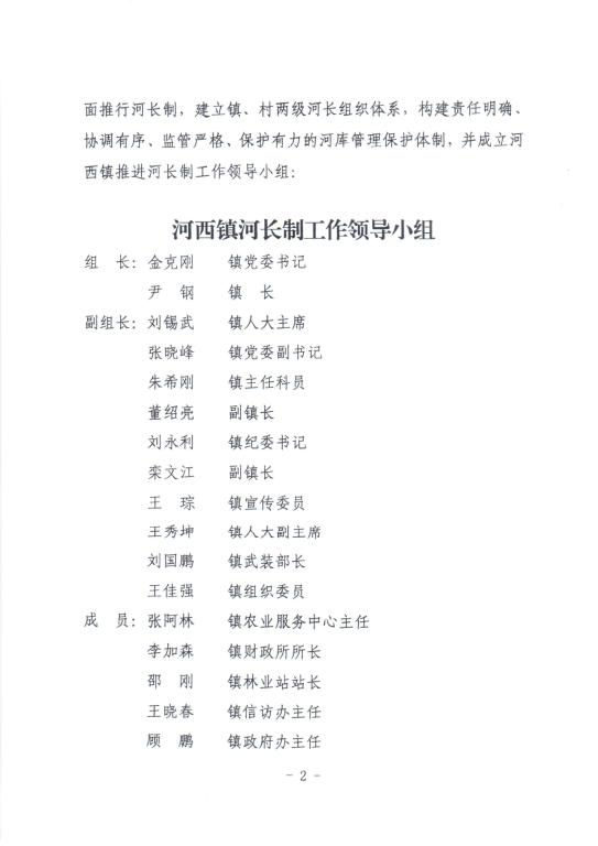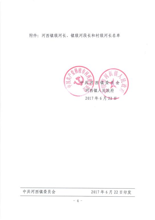 中共河西镇委员会 河西镇人民政府关于设立河西镇镇级河长、镇级河段长和村级河长的通知